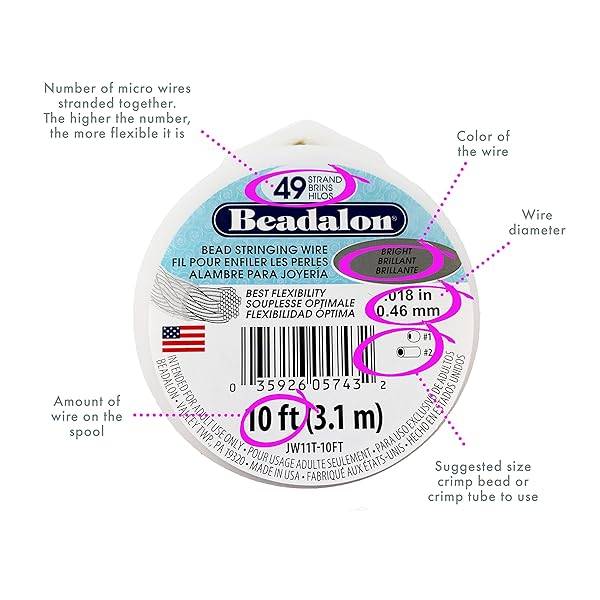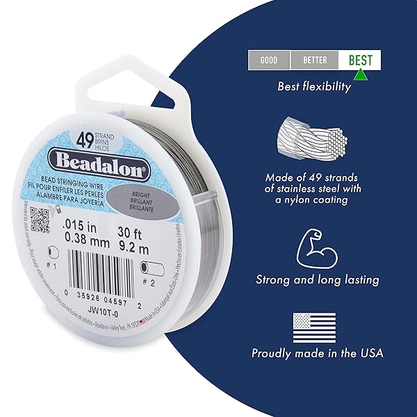 - Beadalon 49 Strand Stainless Steel Bead Stringing Wire, .024 in / 0.61 mm, Bright, 30 ft / 9.2 m provides reliable performance and quality- USE: Jewelry wire for stringing of all types of beads and gemstones for jewelry making necklaces, bracelets, and beading crafts. Highest quality option for jewelry designers and DIY makers.
