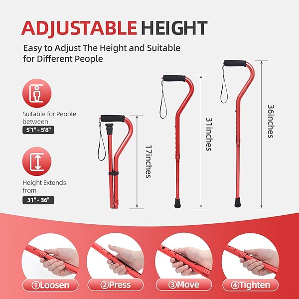 - BeneCane Walking Cane for Men & Women Adjustable Cane with Offset Soft Cushioned Handle -Portable Lightweight Sturdy Mobility Walker Aid for Elderly, Seniors Collapsible Cane Red offers reliable performance and quality