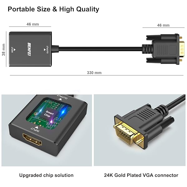 - BENFEI HDMI to VGA, Uni-Directional HDMI Computer to VGA Monitor Adapter (Female to Male) with 3.5mm Audio Jack Compatible with TV Stick, Computer, Desktop, Laptop, PC, Monitor, Projector, Roku, Xb...- SPECIALLY DESIGNED for TV sticks: this active HDMI to VGA adapter could connect HDMI compatible Device to VGA compatible monitor, projector, TV. Please use HDMI 1.4 Version cable within 26ft to ens...