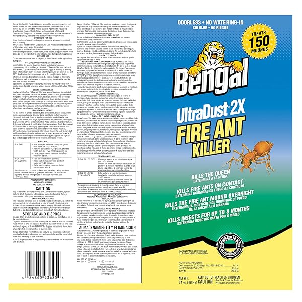 * Bengal UltraDust 2X Fire Ant Killer - Eliminates 150 Ant Mounds - Kills Insects for Up to 8 Months - No Watering-in Required - 24 oz: keep your surroundings free of fire ants while spending less with the bengal ultradust 2x fire ant killer * Guaranteed for effective results * This 24-ounce fire ant dust proficiently treats 150 fire ant mounds * Killing the entire mound overnight and killing fire ants on contact * Including the queen