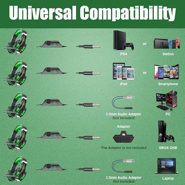 - BENGOO G9000 Stereo Gaming Headset for PS4 PC Xbox One PS5 Controller, Noise Cancelling Over Ear Headphones with Mic, LED Light, Bass Surround, Soft Memory Earmuffs for Laptop Mac - Green offers reliable performance and quality- Multi-Platform CompatibleSupport PlayStation 4, New Xbox One, PC, Nintendo 3DS, Laptop, PSP, Tablet, iPad, Computer, Mobile Phone. Please note you need an extra Microsoft Adapter (Not Included) when connect with an old version Xbox One controller
