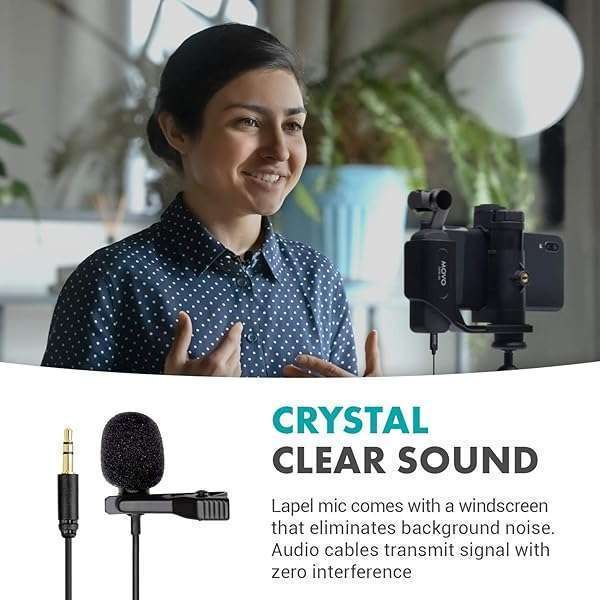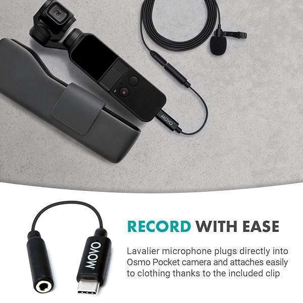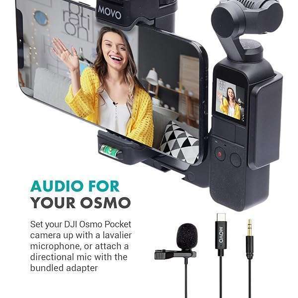 - Movo Lavalier Microphone for DJI Osmo Pocket/Pocket 2 - Lavalier Handheld Camera Microphone and Adapter - Works with Osmo Gimbal for Camera provides reliable performance and quality- AUDIO FOR YOUR OSMO: Lavalier microphone and adapter cable designed specifically to bring crisp sound to your Osmo Pocket videos- LAPEL MICROPHONE: Lavalier mic draws power from Pocket camera and features a 4 foot long cable for flexible placement
