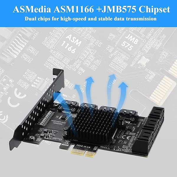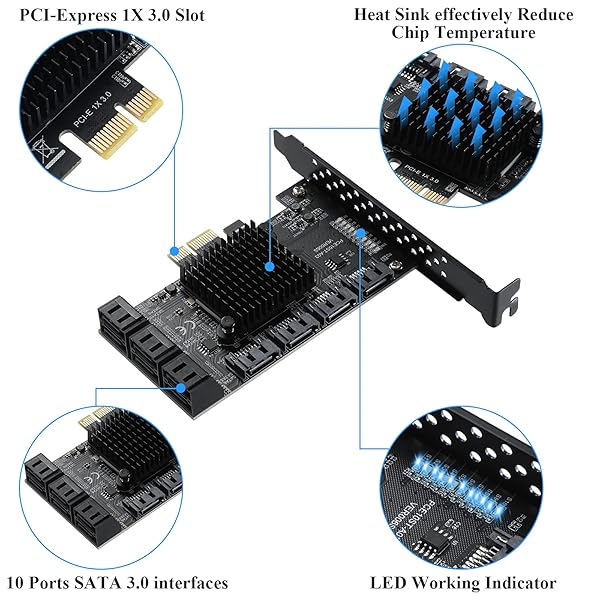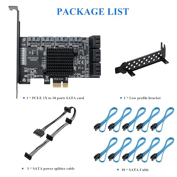 - BEYIMEI PCIE 1X SATA Card 10 Ports,6 Gbps SATA 3.0 Controller PCIe Expansion Card,Non-Raid,Support 10 SATA 3.0 Devices,with Low Profile Bracket and 10 SATA CablesChip:ASM1166 offers reliable performance and quality- 10 Ports PCI-E to SATA 3.0This PCIE SATA CARD allows you to add 10 SATA 3.0 6Gbps devices to your computer. No need to drive, plug and play