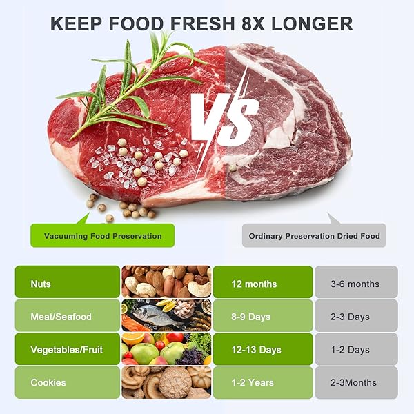 - BEYUAM Vacuum Sealer Machine for Food Storage, 5 in1 with Cutter Food Vacuum Sealer with Dry&Moist Modes, Includes 15PCS Vacuum Seal Bags,1 Air Suction Hose Strong Suction & Low Decibel offers reliable performance and quality