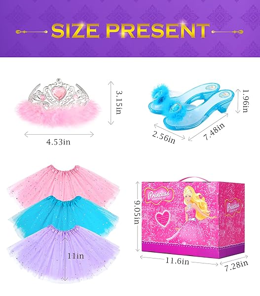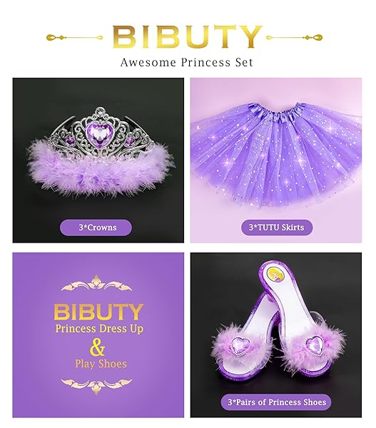 - BIBUTY Princess Dress Up Shoes , Dress Up Clothes Pretend Play Costumes-3 Sets of Princess Shoes, Dresses and Crowns, Princess Accessory Toys for 3-6 yr Girl Birthday Gifts offers reliable performance and quality