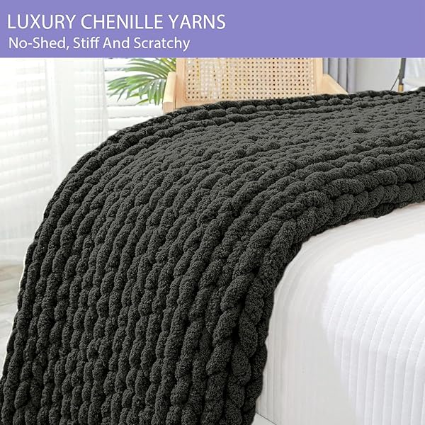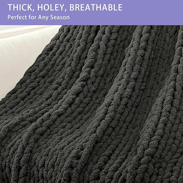 - Bigacogo Chunky Knit Throw Blanket for Couch, 60x80 inches, 100% Hand Knitted with Thick Jumbo Chenille Yarn, Cozy Soft Large Rope Knot Cable Crochet Blankets for Sofa Bed Living Room, Dark Grey offers reliable performance and quality