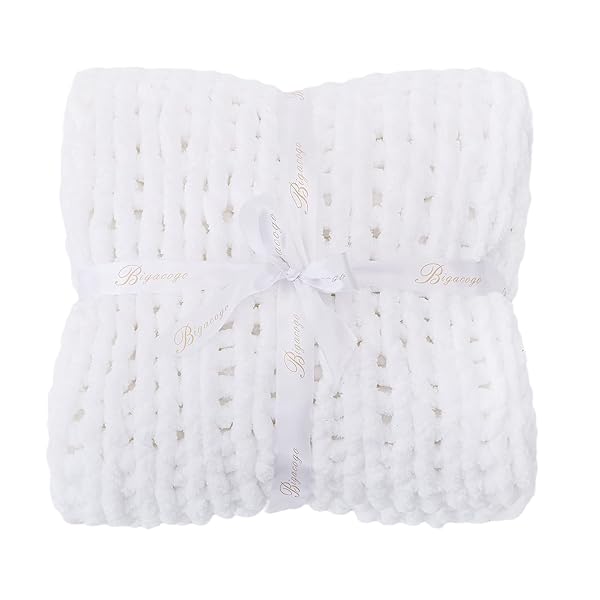 - Bigacogo Chunky Knit Throw Blanket for Couch, 60x80 inches, 100% Hand Knitted with Thick Jumbo Chenille Yarn, Cozy Soft Large Rope Knot Cable Crochet Blankets for Sofa Bed Living Room, White offers reliable performance and quality