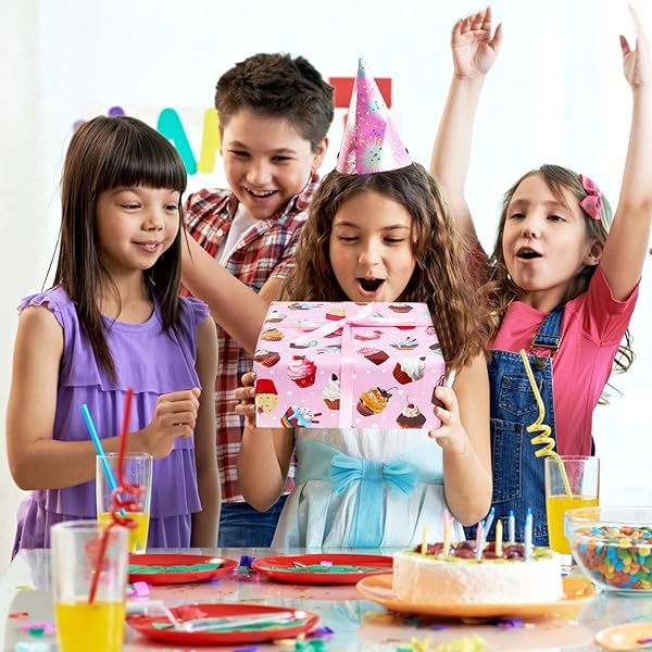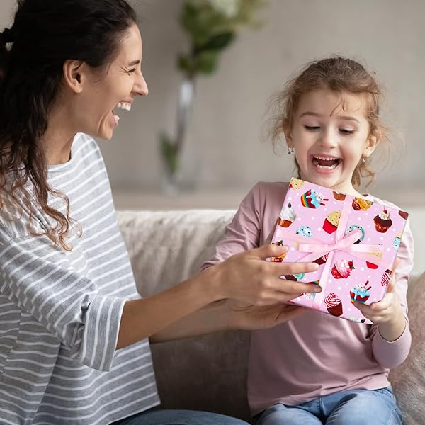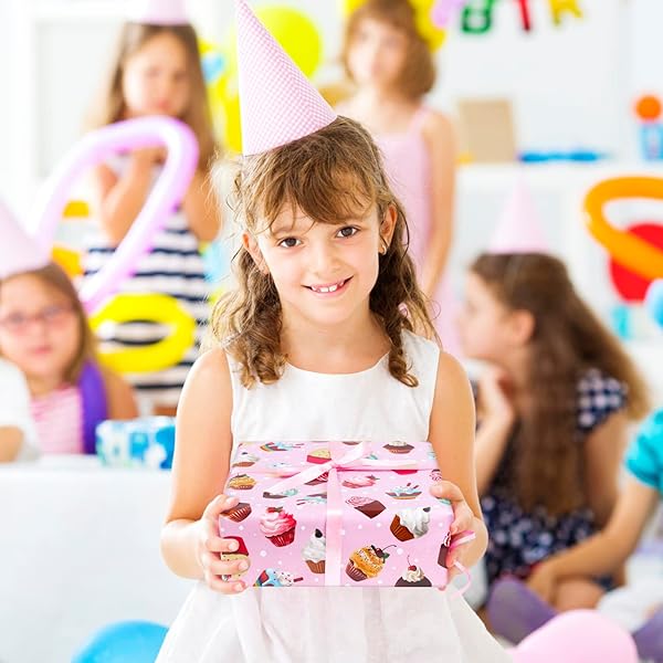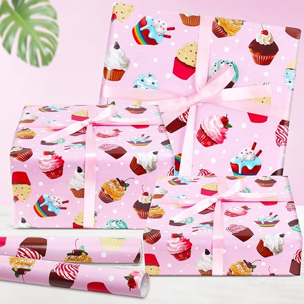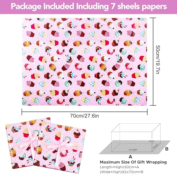 - AircooL Birthday Wrapping Papers, 7 Sheets Pink Cupcake Muffin Printed Pattern Gift Wrap Papers, 20 x 28 inch Per Sheet Folded Flat with 1 Roll Pink Ribbon for Kids Girls Boys Birthday Baby Shower offers reliable performance and quality