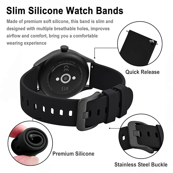 - BISONSTRAP Silicone Watch Bands, Slim Watch Straps with Quick Release, 20mm, Black with Black Buckle with reliable performance and quality- Band Material: Made of premium soft silicone, this watch strap is durable, flexible, sweat-resistant, skin-friendly, washable, odorless, no fading- Breathable Holes: Slim watch strap is designed with 15 breathable holes to improve airflow and comfort, and it can be adjusted to best length that fit for your wrist perfectly, suitable for