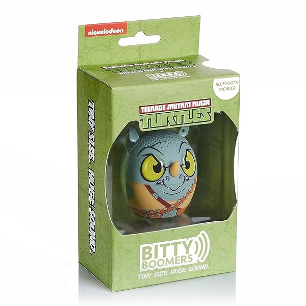 - Bitty Boomers Nickelodeon: Teenage Mutant Ninja Turtles - Rocksteady - Mini Bluetooth Speaker offers reliable performance and quality- Ultra-Portable 2" Tall Speaker- Bluetooth 5. 0 Technology Wirelessly Connects to all Bluetooth Enabled Devices- 30Ft. Wireless Range / Over 4 Hours of Music Time on a Single Charge. / Rechargeable - Micro USB Cable Included- Easily Connect 2 Bitty Boomers Together and Enjoy a True Wireless Stereo Experience