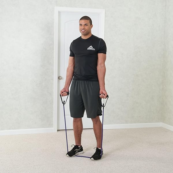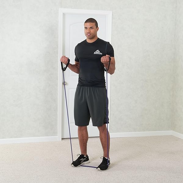 - Black Mountain Products Single Resistance Exercise Band with Door Anchor and Starter Guide, 45-50-Pound, Purple offers reliable performance and quality- Black Mountain Products single resistance band- Yellow 2-4lbs, blue 4-6lbs, green 10-12lbs, black 15-20lbs, Red 25-30lbs, orange 30-35lbs, purple 45-50lbs, atomic 70-75lbs- Each band comes with a door anchor and starter guide- Great for gym, home, travel and office Use