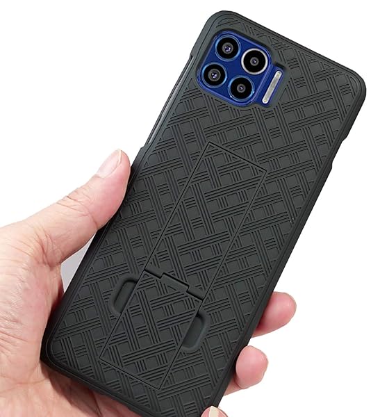 * Case with Clip for Moto One 5G, Nakedcellphone [Black Tread] Kickstand Cover with [Rotating/Ratchet] Belt Hip Holster Combo for Motorola Moto One 5G Phone (XT2075): protective kickstand cover + custom belt clip holster combination for motorola moto one 5g * Ratchet Clip Will Turn/Lock In Different Positions * Streamline Slim Design * Secure Design Holster Holds Phone "Face-In" for Optimal Screen Protection so Your Display is Concealed and Protected * Kickstand Will Prop Phone for Viewing