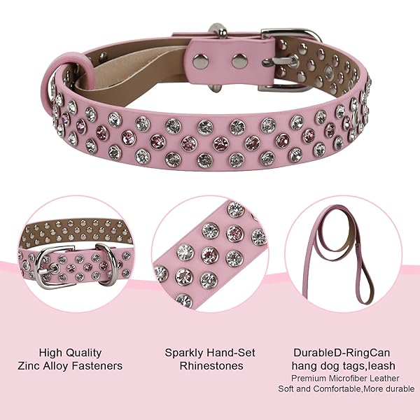 - Rhinestone Dog Collar, Bling Diamond Leather Dog Collar with Leash Adjustable, Dazzling Sparkly Heavy Duty Studded Microfiber Leather Spiked Cute Dog Collar for Small Medium Large Girl Dogs,Pink offers reliable performance and quality