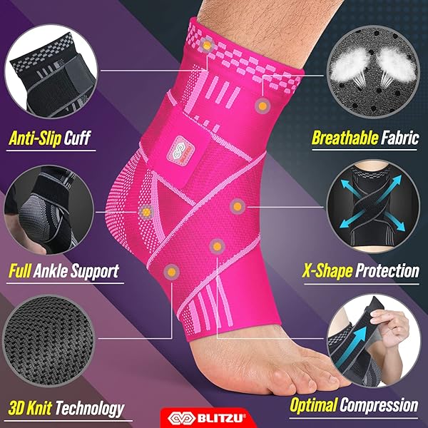 - BLITZU Ankle Brace for Women, Men, Plantar Fasciitis Relief, Achilles Tendonitis Brace for Sprained Foot, Ankle Compression Sleeve with Strap Pink S offers reliable performance and quality