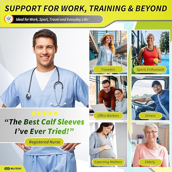 - BLITZU Calf Compression Sleeves for Men and Women. Footless Compression Socks Support for Varicose Vein, Nursing, Running. Leg Sleeve Brace for Shin Splints, Pain Relief & Reduces Swelling Gray L-XL offers reliable performance and quality
