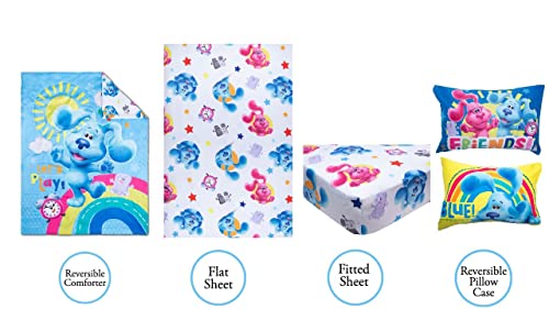 Blue's Clues 4-Piece Toddler Bedding Set: Comforter, Sheets & Pillow Case - Fun Character Design for Kids' Beds