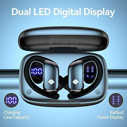 - bmani Ear Buds Wireless Earbuds Bluetooth Headphones with 80H Playtime LED Display Case, Over-Ear Hook with Mic, Stereo Sound, Easy Button Controls, Sports Earphones for Running Workout Gym Black p...- 80H Playtime with Dual LED Display Charging Case: Enjoy uninterrupted music with an ultra-long 80-hour battery life powered by the portable charging case. The digital display on the left clearly sh...