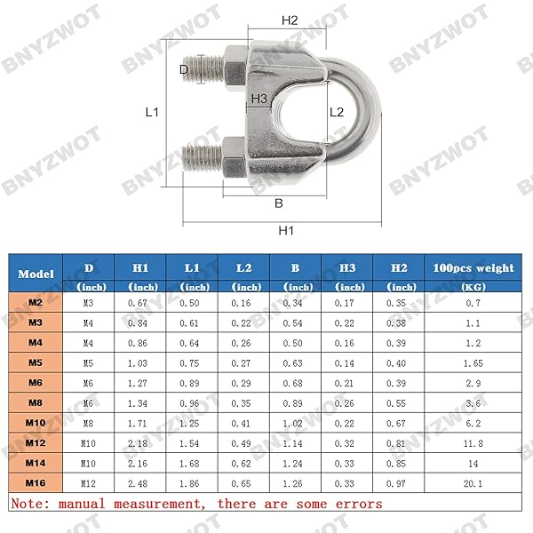 - BNYZWOT 20PCS 1/8 Inch M3 Stainless Steel Wire Rope Cable Clip Clamp offers reliable performance and quality- Package: 20pcs- Material: Corrosion resistant stainless steel- Standard Size: 3mm / 1/8", Overall Length: 20mm / 0.8"- Safety: Made from 304 stainless steel wire rope clamps, corrosion resistance, long life span for maximum corrosion resistance and durability