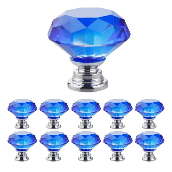 - BNYZWOT Crystal Glass Cabinet Knobs 30mm Diamond Shape Drawer Kitchen Cabinets Dresser Cupboard Wardrobe Pulls Handles 10 Pcs offers reliable performance and quality- Material: Clear cut crystal glass and alloy base, shiny polished chrome, glittering and sparking, diamond shape, good decoration for your home or office- Size: Screw Thread Length:0.8 inch Height:1 inch Diameter: top 1.3 inches bottom:0.6 inch