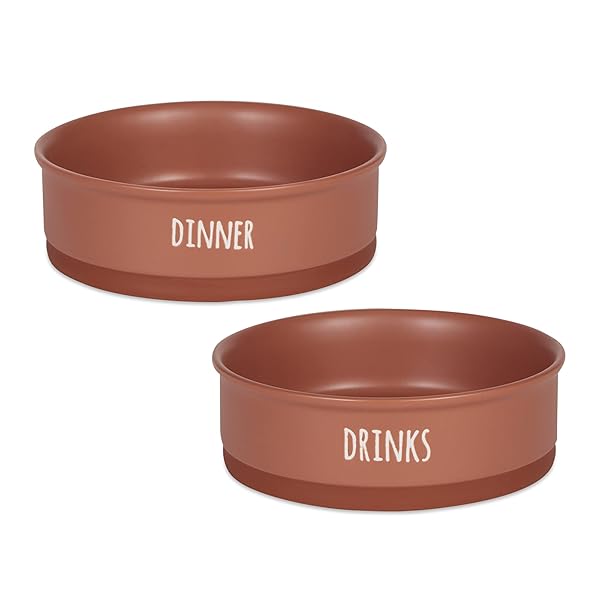 Bone Dry Ceramic Pet Bowls - Dishwasher Safe, Non-Slip, Terra Cotta, 2 Count for Dogs & Cats - Large 7.5x2.4 Size