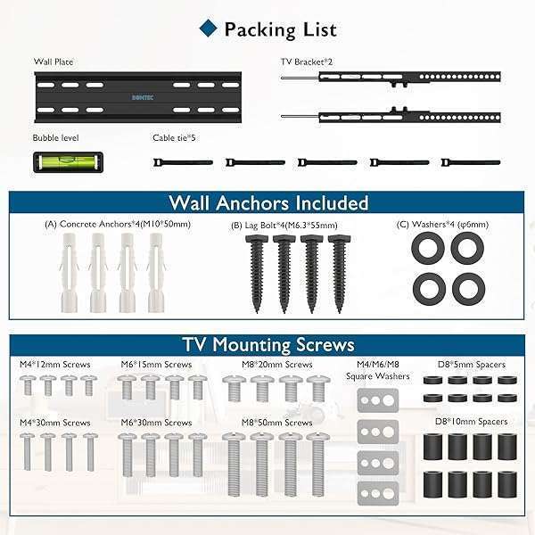 - BONTEC TV Wall Mount Tilting for 23-60 inch TVs, Low Profile Design, Max VESA 400x400mm, Holds up to 115lbs, TV Mount for LCD LED OLED Flat Screens, Fixed Ultra Slim Bracket Fits 16" Studs offers reliable performance and quality