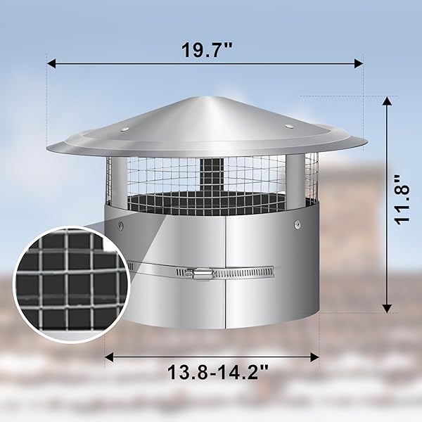 - Bootuu 14 Inch Round Chimney Cap(no Assembly Required), 14 Inch Tapered Top Chimney Cap with Fastening Device with Screen, Stainless Steel offers reliable performance and quality- Function and Usage: The circular chimney cap with screen windows is located at the top of the chimney, which can effectively prevent rain and snow from flowing down the chimney duct, and prevent debris and animals from entering