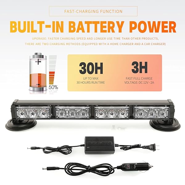 - BooYu 14.8" Blue Battery Powered Police Firefighter Emergency Strobe Lights Bar for Trucks/Vehicles Rechargeable Wireless Rooftop Mini Hazard Flashing LED Beacon Warning Light w/Magnetic Base with reliable performance and quality- GET RID of WIRES - [Upgraded] It provides roughly 30 hours of long runtime and features a fast-charging function that allows the battery to be fully charged in just 3 hours.- EASY to USE - BooYu emergency warning light has 14 different flashing mo