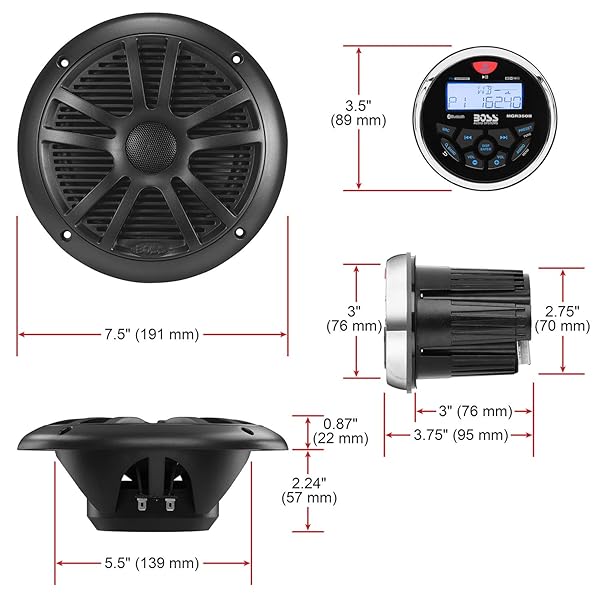 - BOSS Audio Systems MCKGB350B.6 Weatherproof Marine Gauge Receiver and Speaker Package - IPX6 Receiver, 6.5 Inch Speakers, Bluetooth Audio, USB, MP3, AM/FM, NOAA Weather Band Tuner, No CD Player offers reliable performance and quality- Bluetooth - Play and control music through your smartphone or MP3 player as well as apps like Spotify / Pandora, wirelessly