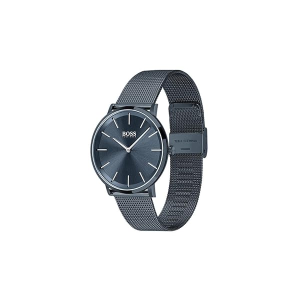 - BOSS Men's Quartz Watch with Stainless Steel Strap, Blue, 20 (Model: 1513827) offers reliable performance and quality- AN UNDERSTATED AND ULTRA-SLIM DESIGN: The BOSS Skyliner captures the DNA of the brand thanks to its architectural case shape. Designed for every modern man who likes to keep it simple. The brushed sunray dial with reflector ring is complete with cut-out indexes, and finished with the iconic BOSS logo
