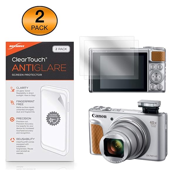 - BoxWave ClearTouch Anti-Glare Screen Protector (2-Pack) - Matte Film Skin for Canon Powershot SX740 HS offers reliable performance and quality- 🌞 [ANTI-GLARE] BoxWave Screen Protector Compatible With Canon Powershot SX740 HS. Two (2) Award-winning Anti-Glare Screen Protectors, precision-cut to fit your Powershot SX740 HS's exact dimensions! Keep the extra one for back up later, or share one with a friend!