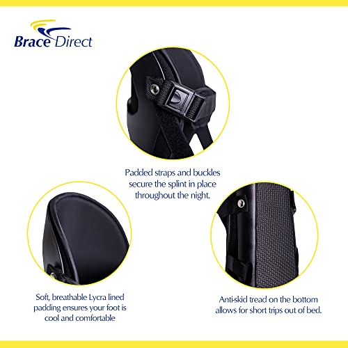 - Brace Direct Adjustable Posterior Night Splint for Plantar Fasciitis, Achilles Tendonitis, Heel Pain and Foot Drop - Rigid Support Sleep Boot with Custom Stretch (M: Mens 7.59, Womens 8.510) offers reliable performance and quality- MEDIUM NIGHT SPLINT: Sizing based on U.S. shoe sizes. Fits Mens 7.59, Womens 8.510. Works on either left or right foot