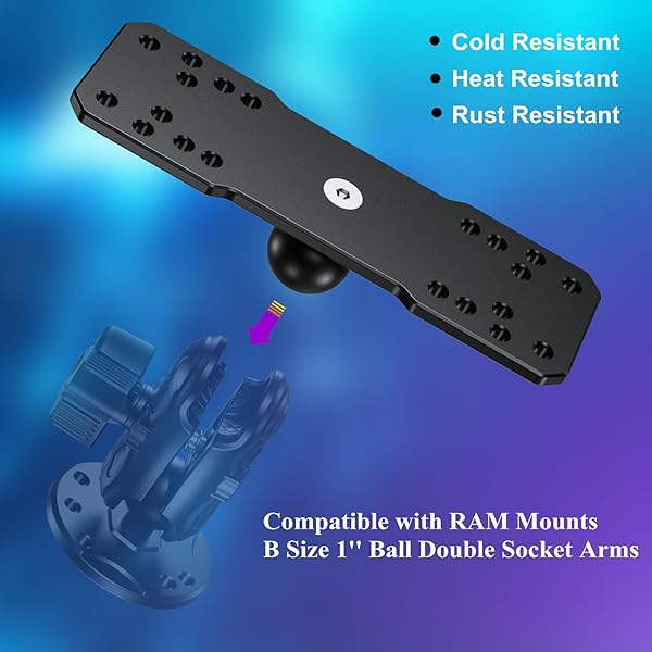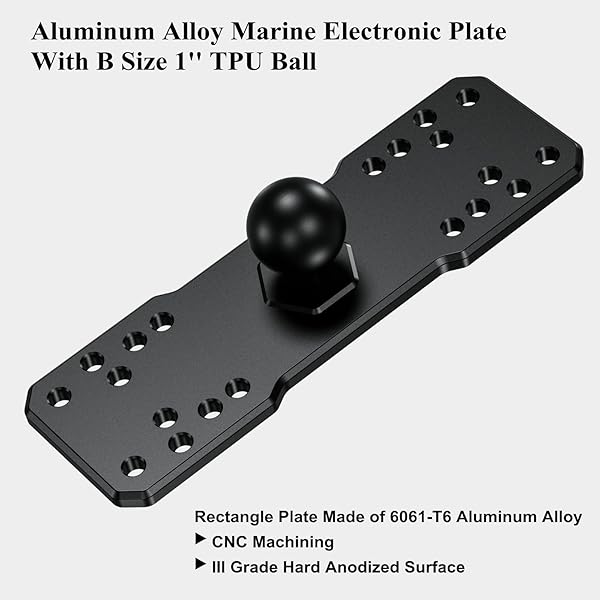 - BRCOVAN 1'' Ball Fish Finder Mount, Aluminum Alloy Universal Marine Electronic Plate, Fit for RAM Mounts B Size 1 Inch Ball Double Socket Arm, Fit for Garmin, Lowrance, Humminbird, Raymarine and More with reliable performance and quality- The marine electronic plate consists of a B size 1'' TPU ball connected to a 6.25" x 2" rectangle plate. The rectangle plate features 20 pre-drilled holes will match many electronic devices and mounts, including marine fish finders and GPS chartp
