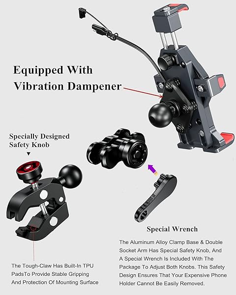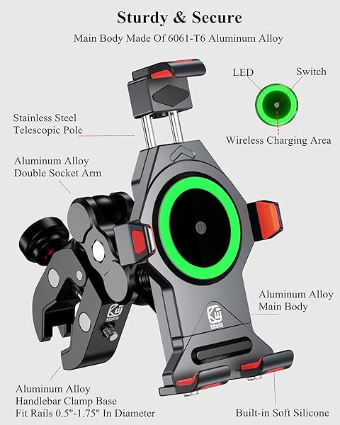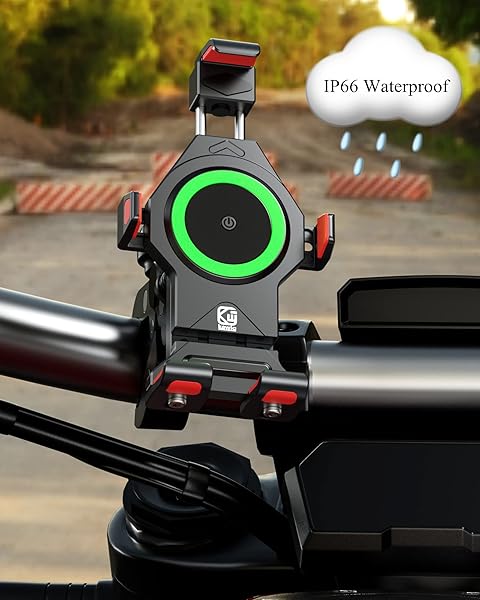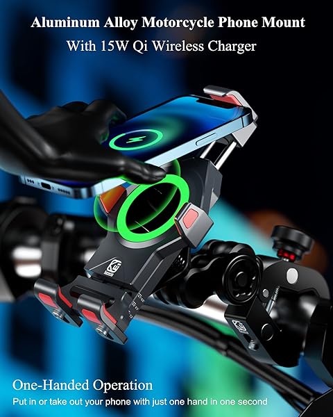 - BRCOVAN Motorcycle Phone Mount with 15W Qi Wireless Charger & Vibration Dampener, Metal, Anti-Theft, Anti-Shake, Adjustable Motorcycle Handlebar Cellphone Holder Fit 4.7''-7.2'' Smartphones with reliable performance and quality- Wireless Charging: The motorcycle phone mount Qi 15W wireless charger compatible with all Qi 15W / 10W / 7.5W / 5W wireless charging modes on the market. Input: DC 12V. IP66 waterproof- Two Ways to Get Power: The package comes with SAE and USB harne