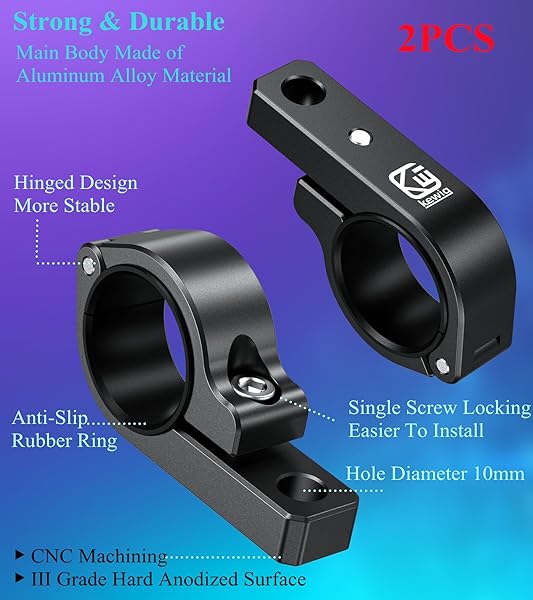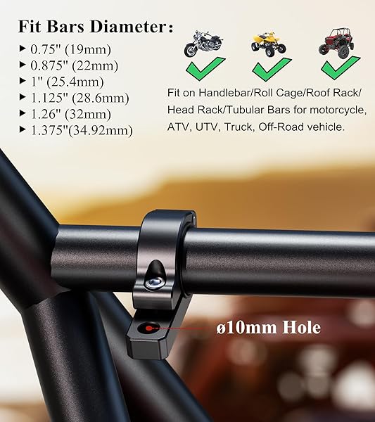- BRCOVAN Light Bar Mounts 2PCS, Aluminum Alloy Off-Road LED Light Mounting Bracket, Fit for Round Rails 0.75" / 0.875'' / 1" / 1.125'' /1.26" / 1.375'' in Diameter, for Motorcycle ATV UTV Boat Truck with reliable performance and quality- The light mounts made of 6061-T6 aluminum alloy material with CNC machining and iii grade hard anodized surface for durability and reliability in the most demanding environments- Fit for round rails 0.875"(22mm), 1"(25.4mm), 1.125"(28.6mm),