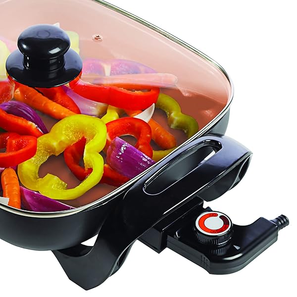 Brentwood 12-Inch Electric Skillet with Glass Lid - Non-Stick Copper Cookware