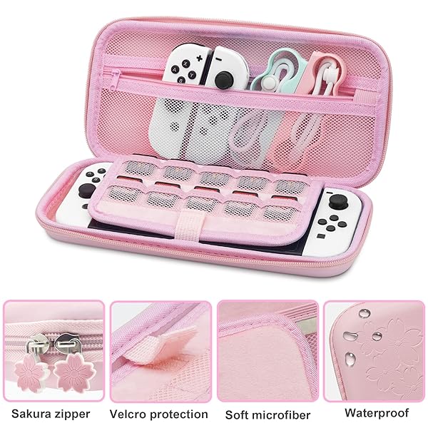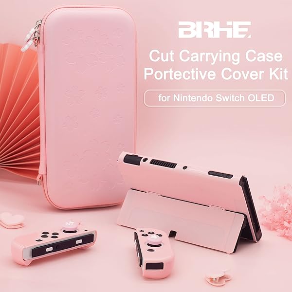 - BRHE Cute Travel Carrying Case for Nintendo Switch / Switch OLED Accessories Kit with Hard Protective Cover, Glass Screen Protector, Ultra-Thin Adjustable Stand and Thumb Grip Caps 10 in 1 (OLED Pink): reliable performance and quality- Nintendo Switch Oled Case Beautiful cherry blossoms- High Quality Pu Material Switch Oled CaseUsing high- Portable Hand Strap And Shoulder Strap Comes with a- Nintendo Switch Oled Pink Cover Set Protect your