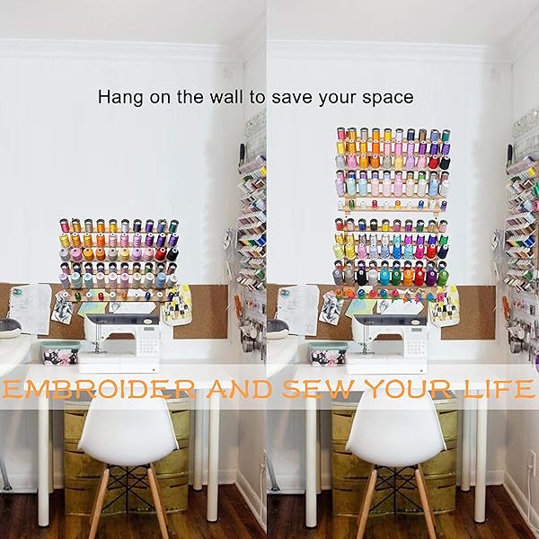 - New brothread 2X60 Spools Wooden Thread Rack/Thread Holder Organizer with Hanging Hooks for Embroidery Quilting and Sewing threads offers reliable performance and quality- SET OF 2X60 MINI SPOOLS THREAD RACKS:This package includes two sets of 60 spools thread racks which is equal to a single set 120 spools thread rack