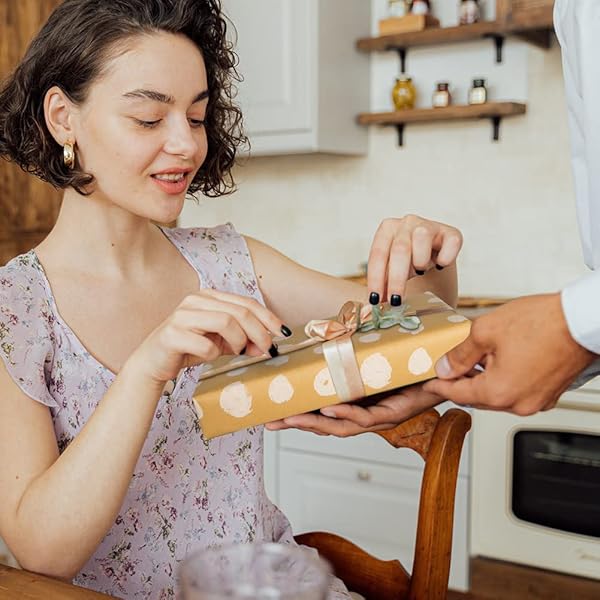 - Brown Recyclable Kraft Gift Wrapping Paper 4 Rolls 17 Inch X10 Feet Per Roll with Stripe Dots Waves Pattern 3D White Printed Kraft Recycled Paper for Holidays, Weddings, Birthday, Winter Solstice offers reliable performance and quality- Effortlessly festive and beautifully understated, this pack of kraft wrapping paper from Boerni is the easiest way to make each gift look stunning
