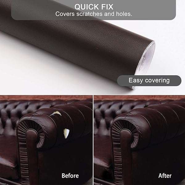 * BSZHTECH Leather Repair Tape Self-Adhesive Leather Repair Patch for Couch Furniture Sofas Car Seats Advanced PU Vinyl Leather Repair Kit (Dark Brown, 17X79 inch): advanced pu materials and super waterproof: leather patch tape is made of pu and opp compound that high wear resistance and good toughness properties * And strong adhesive that can be used for a long time * Leather repair kit soft and waterproof material is easy to clean * Strong Sticky: Keep the surface of the object clean * Make