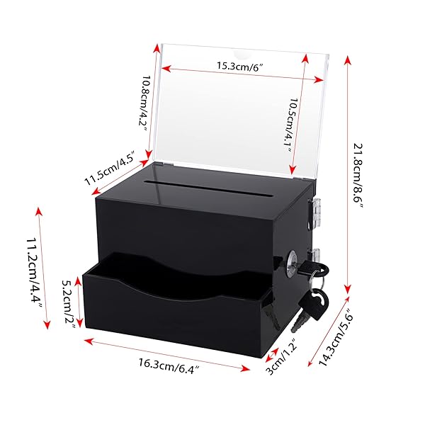 - BTSKY Acrylic Suggestion Box with Lock, Acrylic Donation Box with Sign Holder, Office Ballot Box with Pocket Collection Box for Voting Locking Mailbox, Suggestion Box with Removable Sign Slot (White) with reliable performance and quality- Durable & Convenient Suggestion Box : The approximate size is 6.4x4.5x4.4 inch/ 16.3x11.5x11.2cm (L*W*H), with 6x4 inch sign holder and 1.2x2 inch pocket slot. Made of high-quality thick acrylic material, the structure is solid and stable, and ha