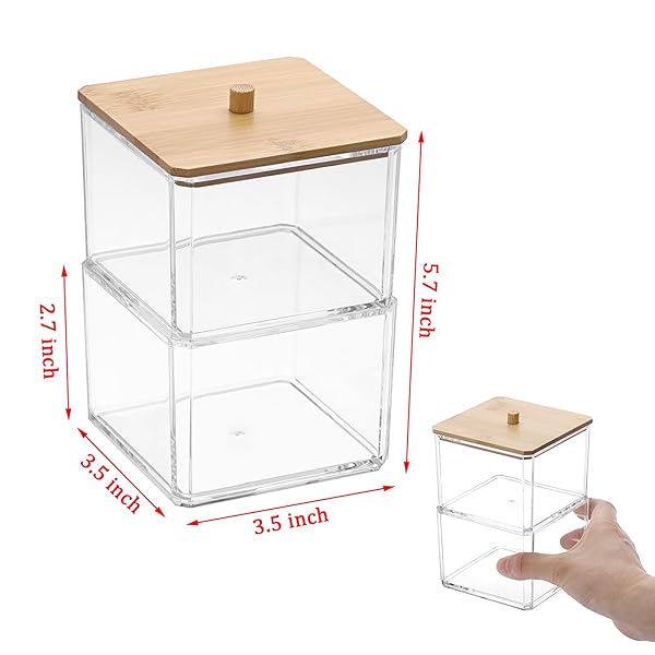 - BTSKY Clear Stackable Paper Clip Holder with Bamboo Lid 2-Layer Paperclip Box Thick Acrylic Office Supply Accessory Organizer Square Small Storage Holder Cute Qtip Holder for Office Bathroom Vanity with reliable performance and quality- Cute & Compact Size: The clear organizer container measures by 3.5"L x 3.5"W x 5.7"H - 9.1x9.1x14.6cm, which is cute and dont take much room of the desktop. Can be used to hold many kinds of small accessories such as paper clips, office binder clip
