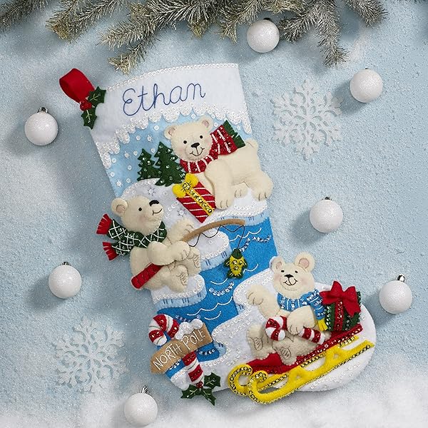 - Bucilla Felt Applique 18" Stocking Making Kit, Polar Bear Buddies, Perfect for DIY Arts and Crafts, 89465E offers reliable performance and quality- BEAUTIFUL CLASSIC STOCKING - This unique 18" felt applique stocking is the perfect embroidery kit for your holiday dcor. Fill this stocking with your favorite stocking stuffers to make the holidays special