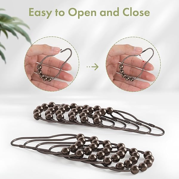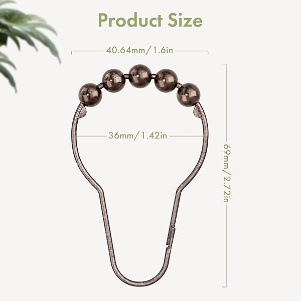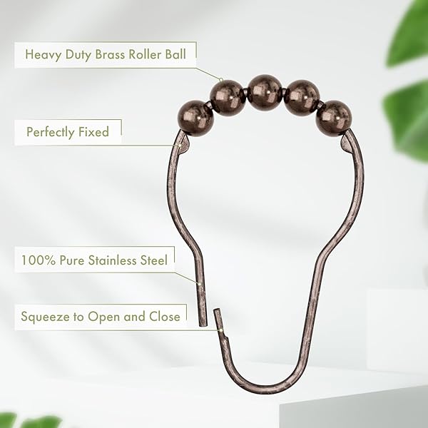 - Amazer Shower Curtain Hooks, Decorative Bronze Shower Curtain Hooks,Stainless Steel Rust-Resistant Shower Hooks for Curtains-Set of 12 offers reliable performance and quality- Rust-resistant stainless steel The heavy duty brass and stainless steel construction allows years of use in the harsh bathroom elements. The 100% pure stainless steel, non-magnetic metal is corrosion-free, meaning it will last indoors and outdoors without rusting