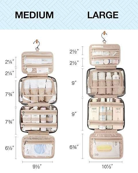 - BAGSMART Toiletry Bag Hanging Travel Makeup Organizer with TSA Approved Transparent Cosmetic Bag Makeup Bag for Full Sized Toiletries, Medium-Black offers reliable performance and quality- Large Capacity: Medium size: Rolled - 11'' x 3.7" x 7.9"; Opened - 9.5'' x 4" x 26.5; Large size :Rolled: 12.2'' x 4" x 9"; Opened: 10.5'' x 4" x 29.8. 4 separate compartments with 1 TSA-approved cosmetic bag