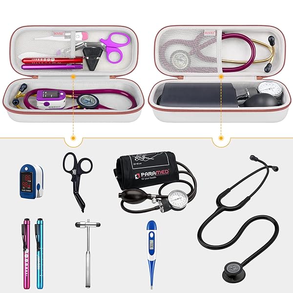 - BOVKE Stethoscope Case Bag for 3M Littmann Classic III, Lightweight II S.E, Cardiology IV, MDF Acoustica Lightweight Stethoscopes - Extra Pocket fits Nurse Accessories for Work, White Rosegold prov...- Case Only! (stethoscopes and accessories are not included). This stethoscope carrying case comes with a mesh pocket for other nurse accessories such as: Medical Scissors, EMT Shears, LED Penlights ...