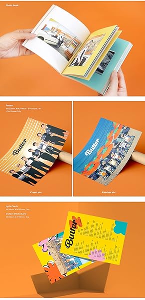 * Big Hit Entertainment KTMMD1083 BTS - Butter Album+Extra Photocards Set (Cream ver.): album: contains bts's 'butter' album * Extra Photocards: Set of 10 random extra photocards * Rectangular Box: Comes in a rectangular box shape * From Big Hit Entertainment: Official merchandise from BTS's label * For All Seasons: Perfect for any BTS fan all year round