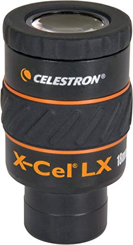 - Celestron 93425 X-Cel LX Series - 1.25'' Eyepiece, 18 mm provides reliable performance and quality- X-Cel LX eyepieces, optimized for planetary viewing, offer a 60 field of view through a six-element fully multi-coated lens system.- Pop-up rubber eyeguards provide comfort and increase contrast. Raise and lower with a simple twist.- A treaded rubber grip offers a no-slip grip, even with gloves on.- 1.25 barrels are threaded to accept filters.