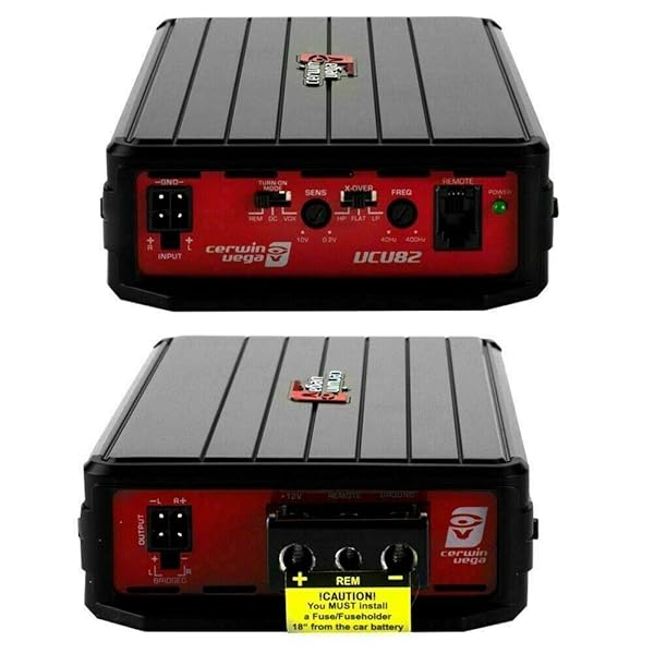 - Cerwin-Vega VCU82 600W Max 2-Channel Class D 600W Full Range Amplifier with Remote Bass Control offers reliable performance and quality- Seamless System IntegrationVersatility meets simplicity with a remote turn-on configurator (REM/DC/VOX), compatibility with Hi/Lo-level inputs up to 12V, and advanced RFI rejectionensuring flawless connectivity and interference-free sound across all setups