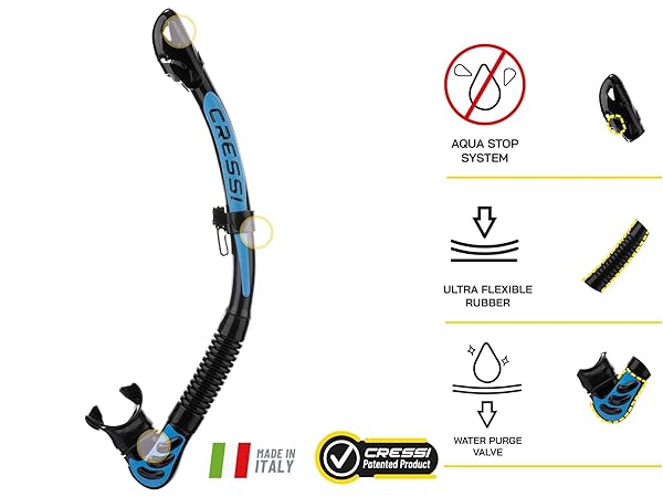 - Cressi Alpha Ultra Dry Snorkel, Black/Black/White offers reliable performance and quality- The Alpha ultra dry makes easy any snorkeling activity thanks to the different features that help to avoid water entering the tube- Features a float mechanism which closes instantly to prevent water from entering the snorkel whether accidentally or purposely submerged