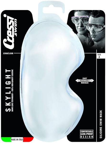 - Cressi Skylight, Clear-White/Blue, Clear Lens offers reliable performance and quality- The Skylight mask uses mono-lens technology, and the lenses are manufactured with an internal antifog treatment, are scratch-resistant, shatterproof- The innovative shape of the Cressi Skylight frame delivers a maximized peripheral view- The silicone strap provides a secure and stable fit on the face for long periods in the water